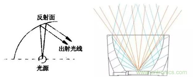 例如我們希望得到一個超窄光束角,如果使用鹵素?zé)糁椋◤U話熒光燈當(dāng)然不行了…),需要計算一個拋物線反射面,抓取燈珠往反射器方向這一半的光,變成平行光發(fā)出,同時還要遮蓋掉燈珠往外方向的光,以避免影響配光曲線(可參考QR111的結(jié)構(gòu),金鹵燈原理相同)。