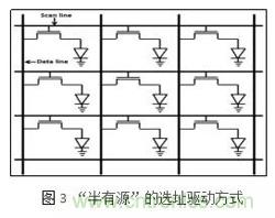 而第三種“半有源”驅(qū)動(dòng)雖然可以較好地避免像素之間的串?dāng)_現(xiàn)象,但是由于其像素電路中沒有存儲(chǔ)電容,并且每一列的驅(qū)動(dòng)電流信號(hào)需要單獨(dú)調(diào)制,并不能完全達(dá)到上面列出的有源選址驅(qū)動(dòng)方式的全部?jī)?yōu)勢(shì)。