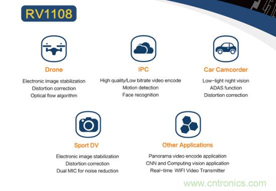 展會上,瑞芯微展示了諸多基于RV1108的IoT物聯(lián)網(wǎng)應(yīng)用終端,包含DRV智能后視鏡、運(yùn)動DV、VR全景攝像機(jī)、IP Camera、無人機(jī)等產(chǎn)品。