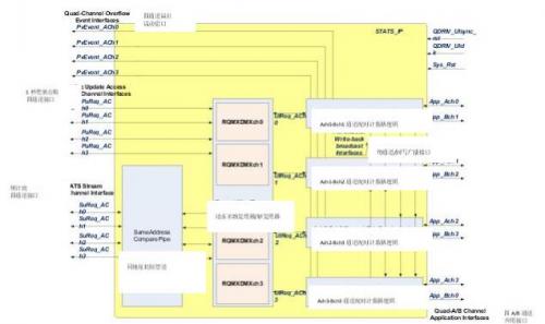 正如模塊圖所示,NPU通過4x25Gbps鏈路將統(tǒng)計(jì)和處理請(qǐng)求推送到IP中。IP的運(yùn)行頻率為存儲(chǔ)器存取頻率的四分之一,并且使用四條被稱為“通道”的平行數(shù)據(jù)路徑以匹配存儲(chǔ)器帶寬。在存儲(chǔ)接口HP和XP運(yùn)行模式中,端口A作為讀取端口,端口B作為寫入端口。每項(xiàng)統(tǒng)計(jì)請(qǐng)求對(duì)保存在與該請(qǐng)求相關(guān)的獨(dú)特存儲(chǔ)位置中的計(jì)數(shù)器數(shù)據(jù)進(jìn)行讀—修改—寫操作。