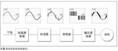 半導體元件的高頻開關會產(chǎn)生諧波、整流中斷和瞬態(tài)電壓峰值。它們給電力網(wǎng)絡帶來負面影響。除了相關EMC標準以外,電力主管部門還會施行進一步的指令,把對電源網(wǎng)絡的干擾減弱到可容忍的程度。扼流器和線路濾波器可用于減弱干擾。除了線路端EMC保護以外,對變頻器輸出端也通常采用保護措施。目標提高效率、延長工作壽命、實現(xiàn)高效布線。