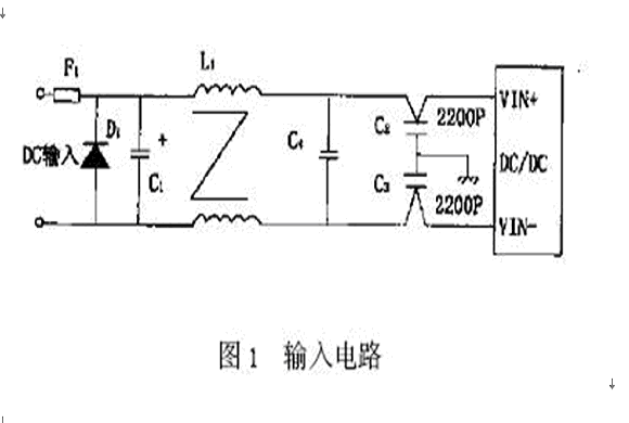 用DC/DC轉(zhuǎn)換模塊設(shè)計的二次電源典型輸入電路如圖1所示,主要包括輸入保護電路和濾波電路。