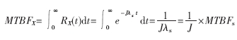 組合電源系統(tǒng)蓄電池組的可靠性計(jì)算條件是蓄電池的故障是相互影響的。任何一只蓄電池故障表現(xiàn)為蓄電池組故障。設(shè)蓄電池的數(shù)量為J,每只蓄電池的可靠度為Rx(t),平均故障間隔時(shí)間為MTBFx, J只蓄電池串聯(lián)后的可靠度為RX(t),則有