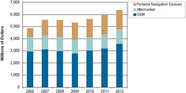 - 預計低成本in-dash導航儀將促進各類汽車導航設備配售率從2007年時的15%上升到2012年的25%
