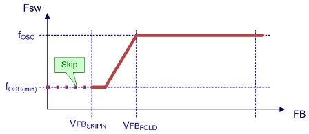 圖1:NCP1237/38/87/88在輕載時采用頻率反走技術(shù)降低開關(guān)損耗