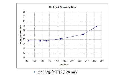 圖1:滿足五星級充電器標準,230V條件下待機功耗低于26mW