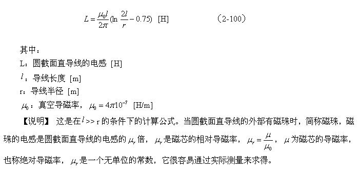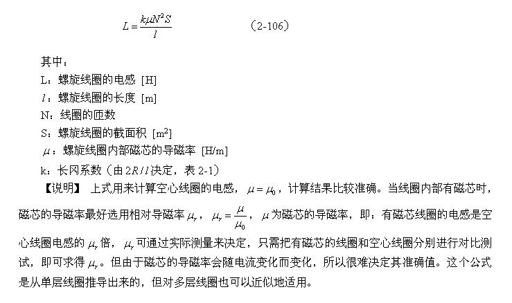 【說明】上式是用來計算變壓器線圈電感的計算公式。由于變壓器鐵芯的磁回路基本是封閉的,變壓器鐵芯的平均導(dǎo)磁率相對來說比較大。鐵芯的導(dǎo)磁率一般在產(chǎn)品技術(shù)手冊中都會給出,但由于大多數(shù)開關(guān)電源變壓器的鐵芯都留有氣隙,留有氣隙的磁回路會出現(xiàn)磁場強度以及磁感應(yīng)強度分布不均勻,因此,(2-108)式中的導(dǎo)磁率只能使用平均導(dǎo)磁率,技術(shù)手冊中的數(shù)據(jù)不能直接使用。