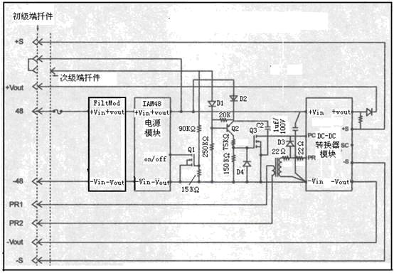 當(dāng)48V母線關(guān)斷時,母線上的保持電容可通過并聯(lián)開關(guān)迅速放電。除了通斷控制功能外,IAM48模塊還具有限制浪捅電流的功能,并且與FiltMod模塊或EMI濾波器模塊配合,還可完成瞬變過電壓保護(hù).通信設(shè)備中為了滿足EMC{電磁兼容)標(biāo)準(zhǔn),通常都采用IAM48和FitMod模塊(見圖1中FitMod模塊與IAM48模塊的連接)。在通信設(shè)備中,都要求電源模塊具有熱插拔功能,因此應(yīng)選用lAM48電源模塊或其他可限制浪涌電流的模塊。