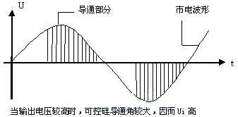 可控硅是一個(gè)控制電壓的器件,由于可控硅的導(dǎo)通角是可以用電路來控制的,固此隨著輸出電壓Uo的大小變化,可控硅的導(dǎo)通角也隨著變化。加在主變壓器初級的電壓Ui也隨之變化。