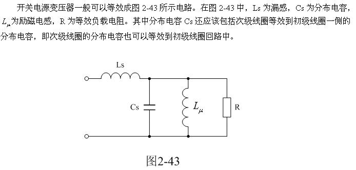 這里順便指出,圖2-45-b的波形是很難測量到的,因為它基本上都在變壓器內(nèi)部的分布電感Ls與分布電容Cs之間產(chǎn)生,但它會通過輻射對周邊電路造成干擾。