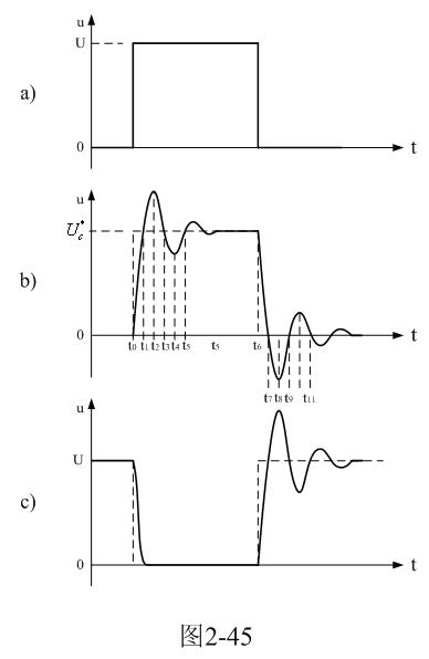 當開關(guān)管Q1導(dǎo)通過后,開關(guān)管開始關(guān)斷,相當于輸入脈沖電壓的上升率為負(脈沖進入反沖階段),此時,輸入脈沖電壓的上升率小于串聯(lián)振蕩回路自由振蕩電壓的上升率,因此,振蕩回路又開始再次釋放能量,振蕩回路再次產(chǎn)生阻尼振蕩,如圖2-45所示。