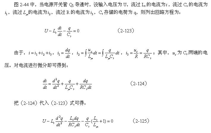 (2-122)式中,Cs為變壓器的總分布電容,Cs1為變壓器初級線圈的分布電容;C1為次級線圈電路中總電容C2(包括分布電容與電路中的電容)等效到初級線圈電路中的電容;n = N2/N1為變壓比。