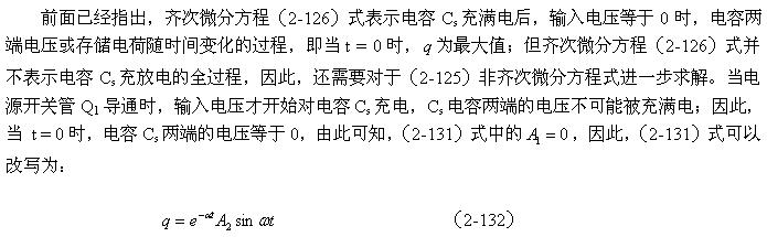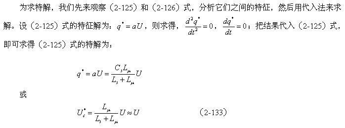 另外,非齊次微分方程(2-125)式的解應(yīng)該等于齊次微分方程(2-126)式的通解與(2-125)式特解之和。