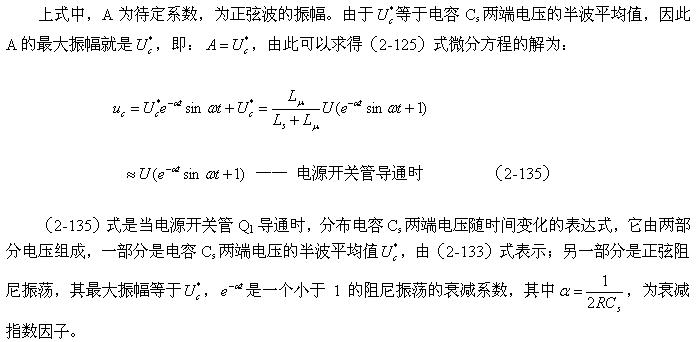 直到t2時刻,流過Ls的電流等于0,電容器Cs充電結(jié)束,同時Cs兩端的電壓也達到最大值;然后電容按正弦曲線開始放電,流過Ls的電流開始反向,到t3時刻,Cs兩端的電壓又與輸入電壓U相等,電容停止放電,但流過Ls的電流不能為0,Ls將又產(chǎn)生反電動勢給電容Cs進行反向充電,所以Cs兩端的電壓低于輸入電壓U。