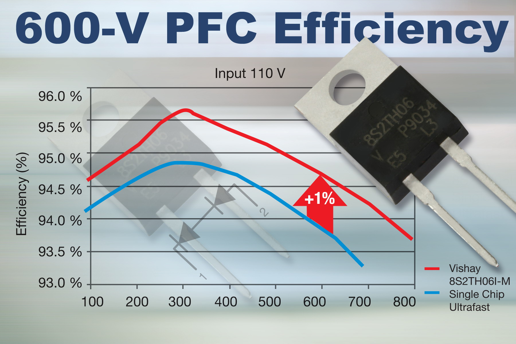 通過在導(dǎo)電和開關(guān)性能間的巧妙平衡,8S2TH06I-M將典型高頻PFC應(yīng)用中的平均整體功率損耗減少了22%。