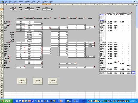 數(shù)據(jù)表未考慮到功耗實際上由兩部分組成:工作在內(nèi)核電壓源上的處理器和工作在I/O電源上的外設都涉及功耗問題。設計小組希望用不同的實施方法和平臺比較功耗。
