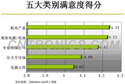 在五大類別的用戶滿意度調(diào)查中,回復(fù)者對(duì)機(jī)電類產(chǎn)品和模塊電源/電池類公司滿意度較高,而對(duì)無(wú)源元件和分立半導(dǎo)體公司滿意度最低,電子元件技術(shù)網(wǎng)調(diào)查分析發(fā)現(xiàn):