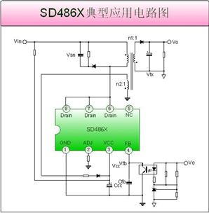 SD486X系列芯片基于士蘭微電子自主研發(fā)的BCD工藝制造,采用了DIP-8的封裝形式,并內(nèi)置了高壓功率MOS系列晶體管,因此,SD486X系列產(chǎn)品具有集成度高、占板面積小、便于整機調(diào)試等突出的特點。相對于采用分立的控制芯片和功率MOSFET的應(yīng)用方案來說,不僅降低了綜合成本,而且大幅度提高了芯片的可靠性。