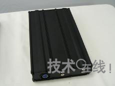 動力用EVB-101是將84個(gè)單元按14串聯(lián)×6并聯(lián)配置而成的。其特點(diǎn)是最大輸出功率高,最高時(shí)為5.2kW,連續(xù)供電時(shí)為1.5kW。單元是采用電池容量為2050mAh的電動助力自行車用高功率單元“UR 18650E”制成的。另外,通過比DCB-101增加串聯(lián)配置的比例,提高了輸出功率。模塊電壓為50.4V(42.0~57.4V),電池容量為10.8Ah,電容量為544Wh。雨堤徹介紹稱,比如,配備于電動踏板摩托車時(shí)的持續(xù)行駛距離“因條件而異,不過配備一個(gè)單元時(shí),能夠行駛10~15km左右。配備2~3個(gè)單元時(shí),能夠行駛30~50km”。模塊的外形尺寸為366mm×213mm×66mm,重約7kg。