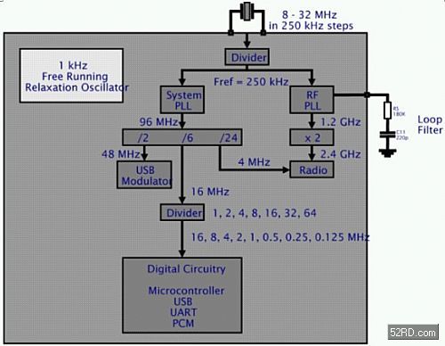 在深層睡眠模式中,主要的晶體加上所有其他時脈元件都被關閉,只留下1kHz給振盪器 (Oscillator) 使用(如圖2所示)