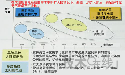 單晶Si型的模塊轉(zhuǎn)換效率設(shè)想最初為近17%左右,但“為了與其他公司競(jìng)爭(zhēng),將力爭(zhēng)盡快提高到18~20%”(有本)。
