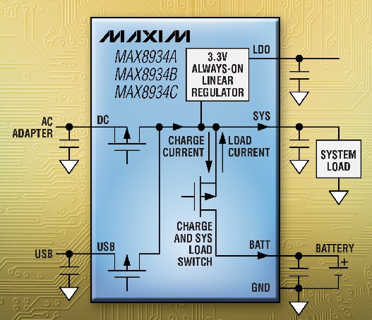 Maxim推出業(yè)內(nèi)首款集成智能電源選擇器(Smart Power Selector)電路的雙輸入線性充電器MAX8934,器件符合JEITA (日本電子信息技術(shù)產(chǎn)業(yè)協(xié)會)推薦標(biāo)準(zhǔn),能夠在各種溫度條件下實現(xiàn)安全充電。MAX8934監(jiān)測電池溫度,根據(jù)溫度的變化自動將充電電流和充電終止電壓調(diào)節(jié)到安全水平。連接外部電源時,智能電源選擇器電路允許系統(tǒng)在無電池或電池深度放電的情況下工作,自動將系統(tǒng)負(fù)載由電池切換至外部電源。器件集成了充電以及在電池與外部電源之間切換負(fù)載所需的所有電流檢測電路和功率開關(guān),可為智能電話、數(shù)碼相機、多媒體播放器、游戲系統(tǒng)及GPS導(dǎo)航系統(tǒng)等采用單節(jié)Li+電池供電的手持設(shè)備提供理想的緊湊方案。