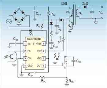 反激式控制IC就是利用這些技術開發(fā)的。比如,TI最近推出的UCC28600準諧振綠色模式反激式控制器就是此類IC的一種。它在反激式變換器中的典型配置如圖1所示。下文中我們將進一步討論這些技術是如何提高AC/DC轉換器的效率并優(yōu)化節(jié)能的。