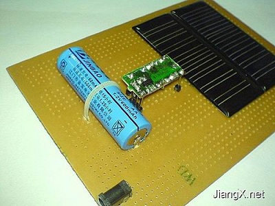 因為我們是要用太陽能電池板來給電池充電的,畢竟太陽能電池板產(chǎn)生較高電壓的機(jī)會不多,電池自身電壓過高后會導(dǎo)致充電無法進(jìn)行。對于我手頭的這一種太陽能電池板,在室內(nèi)靠窗光線比較好的地方輸出電壓便可達(dá)到1.2伏以上(連接在電路中時,非空載狀態(tài)下),這樣就開始給額定電壓為1.2V的電池充電了,但如果要使它輸出3V以上的電壓就恐怕要拿到太陽底下去了。用一節(jié)電池儲能的好處就是可以大大降低充電對光強(qiáng)的要求,延長給電池充電的時間。