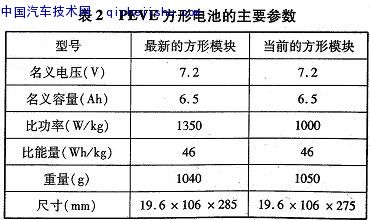 松下最新的方形電池采用新的電極材料,降低了內阻和內壓,使可靠性和壽命得到提高,其主要參數如表2所示,其技術特征: