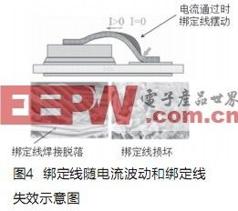 通常,逆變器設(shè)計主要考慮IGBTTjmax(最高結(jié)溫)的限制,但在混合動力車應(yīng)用中,逆變器較少處于恒定工況,加速、巡航、減速都會帶來電流、電壓的改變,由此帶來的ΔTj(結(jié)溫快速變化)將會更大程度影響IGBT的壽命,IGBT導(dǎo)通電流波動時,綁定線也會隨之擺動,對綁定線和IGBT芯片連接可靠性有較大的影響,反復(fù)的擺動可能導(dǎo)致綁定線壽命的耗盡(EOL,EndofLife),例如綁定線和IGBT芯片焊接脫落、綁定線斷裂等,直接導(dǎo)致IGBT的損壞。