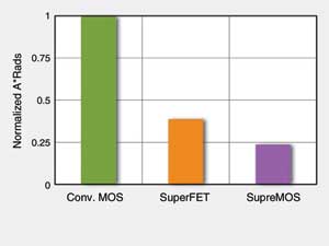 在需要最低RDS(on)與快速切換的應(yīng)用中,新的平衡型器件,例如SupreMOS與SuperFET,可提供最大的優(yōu)勢(shì)。一般而言,SuperFET器件在RDS(on)要求為0.5~1Ω之時(shí)優(yōu)勢(shì)最大。而SuperMOS在RDS(on)低于0.5Ω時(shí)優(yōu)勢(shì)明顯。這一差異又是由于熱阻的作用。