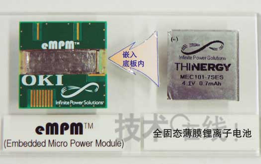 不僅是電容器及IC,就連電池也開始內(nèi)置在印刷底板中。沖Printed Circuits試制出了內(nèi)置薄型全固態(tài)鋰離子充電電池的4層印刷底板,并在2010年6月舉辦的安裝技術(shù)國際展會“JPCA Show 2010”上進(jìn)行了參考展示。“已開始與多家設(shè)備廠商討論使用方法,希望最早于2011年啟動業(yè)務(wù)”(沖Printed Circuits技術(shù)本部商品開發(fā)部擔(dān)當(dāng)部長中澤哲夫)。