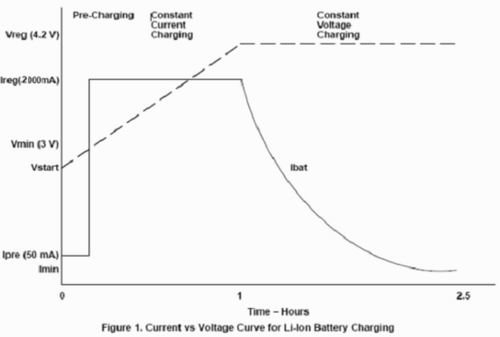由于MSP430F20X3系列的指令速度可達16MIPS,且SD_16的采樣速度為4kSPS,而且電池電壓/電流/溫度變化緩慢,因此對電池組中單節(jié)電池電壓/電流/溫度檢測采用輪回檢測即可完全滿足系統(tǒng)設(shè)計需要;16位的高精度保證了對每節(jié)電池溫度、恒流、恒壓等要求的準確控制。對單節(jié)鋰電池充電的曲線如圖3。