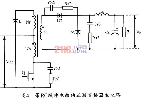2帶RC緩沖的正激變換器主電路設(shè)計(jì)