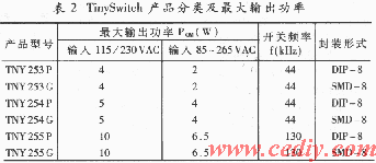 (1)TinySwitch有DIP-8、SMD-8兩種封裝形式、6種型號(hào)。產(chǎn)品分類見(jiàn)表2。