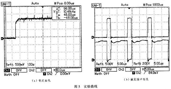 實(shí)驗(yàn)曲線如圖5所示,實(shí)驗(yàn)數(shù)據(jù)為輸入電壓12V,輸出電壓2V左右,測(cè)量電阻0.0025Ω,最大輸出電流20A。