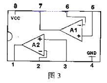 安全保護(hù)電路由KIA358電路來完成。出現(xiàn)異常情況時(shí)向TL494的16腳提供高電平。KIA358為雙運(yùn)放電路(如圖3)。