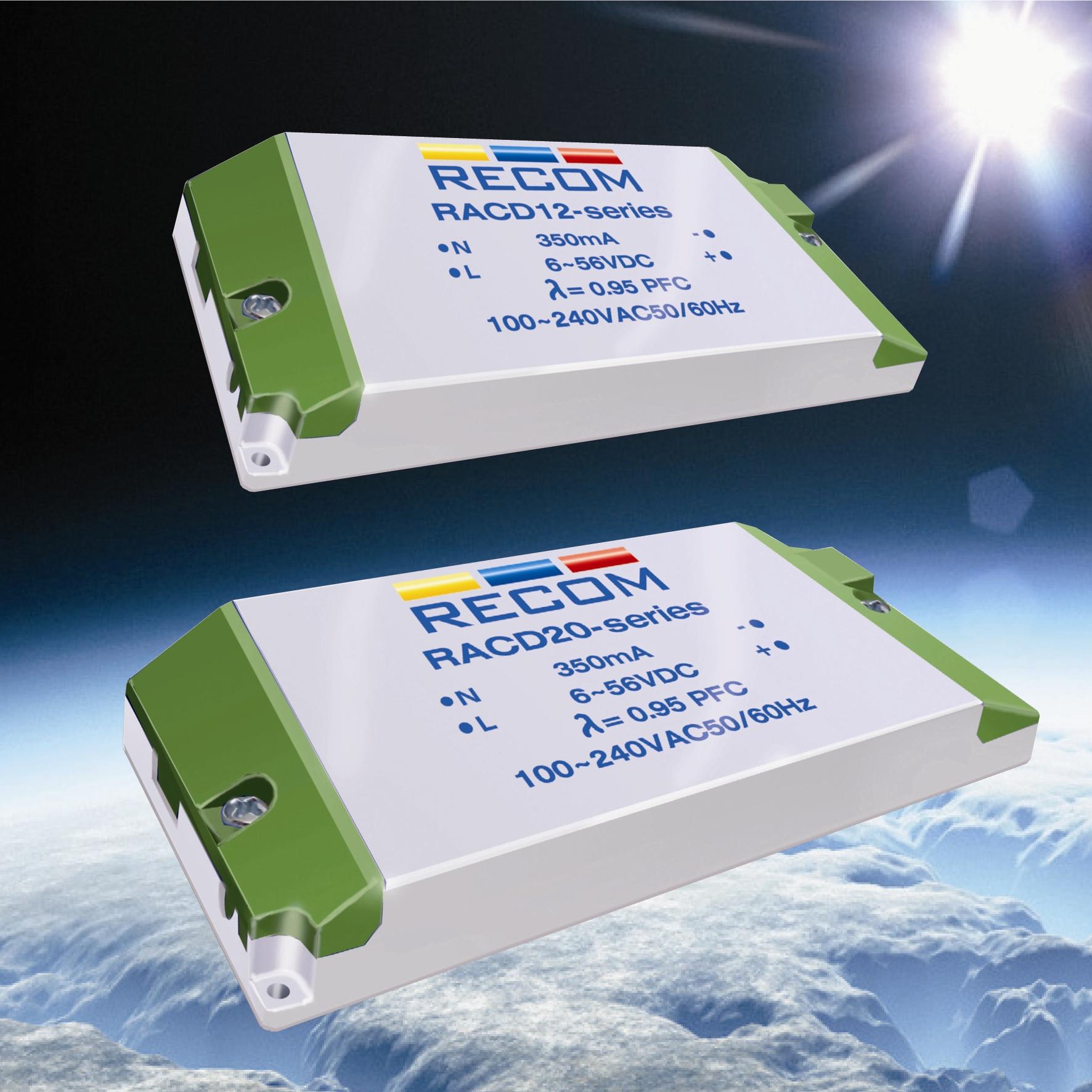 RECOM的全新系列恒流LED驅(qū)動器功率在12瓦至20瓦之間,具有通用AC輸入、功率因數(shù)校正的特性,并通過UL-8750認證。