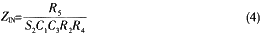 如果引入兩個電容取代Z1和Z3,而Z2、Z4、Z5仍為電阻,則驅(qū)動點(diǎn)的阻抗表達(dá)式可變?yōu)椋?br />