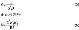 通用阻抗變換器(GIC)的典型電路如圖1所示,其驅(qū)動點(diǎn)阻抗ZIN可以表示為: