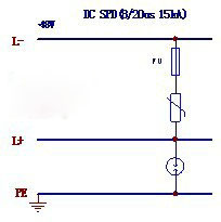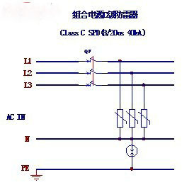 對于站內(nèi)組合電源系統(tǒng)的防雷,其防雷電路比較簡單,也比較成熟,根據(jù)‘郵標’,在組合電源系統(tǒng)交流側(cè)采用通流容量為40kA(8/20μS波形)的 “3+1”方式的交流C級防雷器,在組合電源的直流側(cè)采用通流容量為15kA(8/20μS波形)的“1+1”方式的直流防雷器即可。