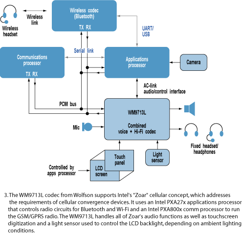 蘇格蘭的Wolfson微電子公司從事硬件音頻編碼解碼器的制造,該公司新產(chǎn)品開發(fā)部的副總裁PeterFrith指出,給手機(jī)加入回放MP3的功能,或者用于下載音樂,或者作為高質(zhì)量的鈴聲,意味著用戶已經(jīng)希望在手機(jī)中看到一個(gè)相對(duì)高保真的回放系統(tǒng)。因此,手機(jī)制造商目前期盼出現(xiàn)功耗甚至更低的便攜式DAC,且能夠達(dá)到100dB的信噪比。