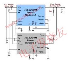 一旦在設(shè)計(jì)中采用了像ISL8200M的電源模塊,就能夠迅速并聯(lián)6個(gè)模塊,實(shí)現(xiàn)高達(dá)60A的功率,這將加速未來的設(shè)計(jì),或迅速適應(yīng)設(shè)計(jì)周期過程中設(shè)計(jì)要求的變化。