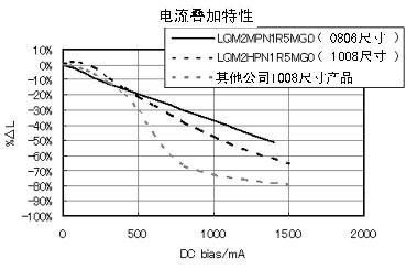 通過直流電流后感值偏執(zhí)特性良好,可以作為各功率電感的特長。電流-感值偏執(zhí)特性是指功率電感通電時,電流變大引起感值下降的性質。這是疊層型功率電感的封閉磁路構造導致的磁通量飽和引起的,因此為了克服這個弱點,開發(fā)新技術以降低疊層鐵氧體中的磁通量分布,從而改善電流的疊加特性,最后反映在各個產品上。