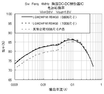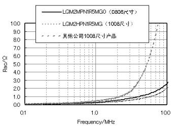 如同圖4中顯示的Rac特性,LQM系列產品能夠充分抑制Rac。同時,圖2的電流-感值偏執(zhí)特性中顯示,它在電流通電時也能確保高感值,擁有良好的電力變換效率特性。這些性能能夠實現手機在待機狀態(tài)下的高電力變換效率,對延長電池壽命做出貢獻。
