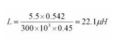 對于升壓型開關(guān)電源的電感值計算,除了占空比與電感電壓的關(guān)系式有所改變外,其它過程跟降壓型開關(guān)電源的計算方式一樣。以圖3為例進(jìn)行計算,假設(shè)開關(guān)頻率為 300kHz、輸入電壓范圍5V±10%、輸出電流為500mA、效率為80%,則最大紋波電流為450mA,對應(yīng)的占空比為:D=1-Vi/Vo=1-5.5/12=0.542 (7)