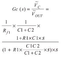 為了實(shí)現(xiàn)系統(tǒng)的抗干擾能力,Buck變換器除了主功率部分以外,還會(huì)有相應(yīng)的負(fù)反饋控制電路,補(bǔ)償網(wǎng)絡(luò)是反饋控制電路的一部分。補(bǔ)償網(wǎng)絡(luò)的加入可以提高環(huán)路的低頻增益,從而提高抗干擾能力;同時(shí)補(bǔ)償網(wǎng)路使系統(tǒng)擁有足夠的相位裕度,從而保證系統(tǒng)處于穩(wěn)定的工作狀態(tài),不會(huì)振蕩。圖2中黃色框內(nèi)的部分就是補(bǔ)償網(wǎng)絡(luò)部分,補(bǔ)償網(wǎng)絡(luò)中包括 R1,C1,C2和Rf1(注:Rf2在環(huán)路分析中不起作用),補(bǔ)償網(wǎng)絡(luò)的傳遞函數(shù)可以表示為: