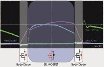 除了RDS(ON)和QG之外,同步整流結(jié)構(gòu)中的其它參數(shù),如體二極管反向恢復(fù)、內(nèi)部柵極阻抗以及MOSFET的輸出電荷(QOSS),現(xiàn)在也變得更具相關(guān)性。在開關(guān)頻率和輸出電流較高時,這些損耗元件的重要性便更為明顯。飛兆半導(dǎo)體的中壓MOSFET產(chǎn)品現(xiàn)在開始針對二極管反向恢復(fù)以及輸出電容的最小化進(jìn)行優(yōu)化。