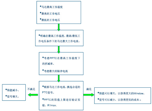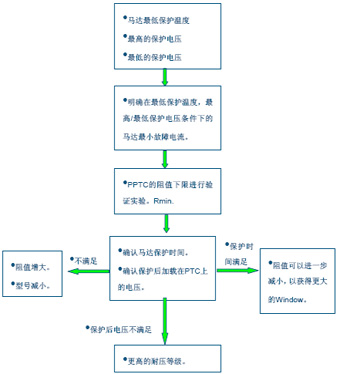 下面先介紹一下在小家電馬達(dá)堵轉(zhuǎn)保護(hù)設(shè)計中PPTC選型的一般程序。