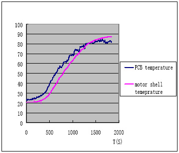 圖4:磨制豆?jié){時PCB板子和馬達(dá)外殼的溫度